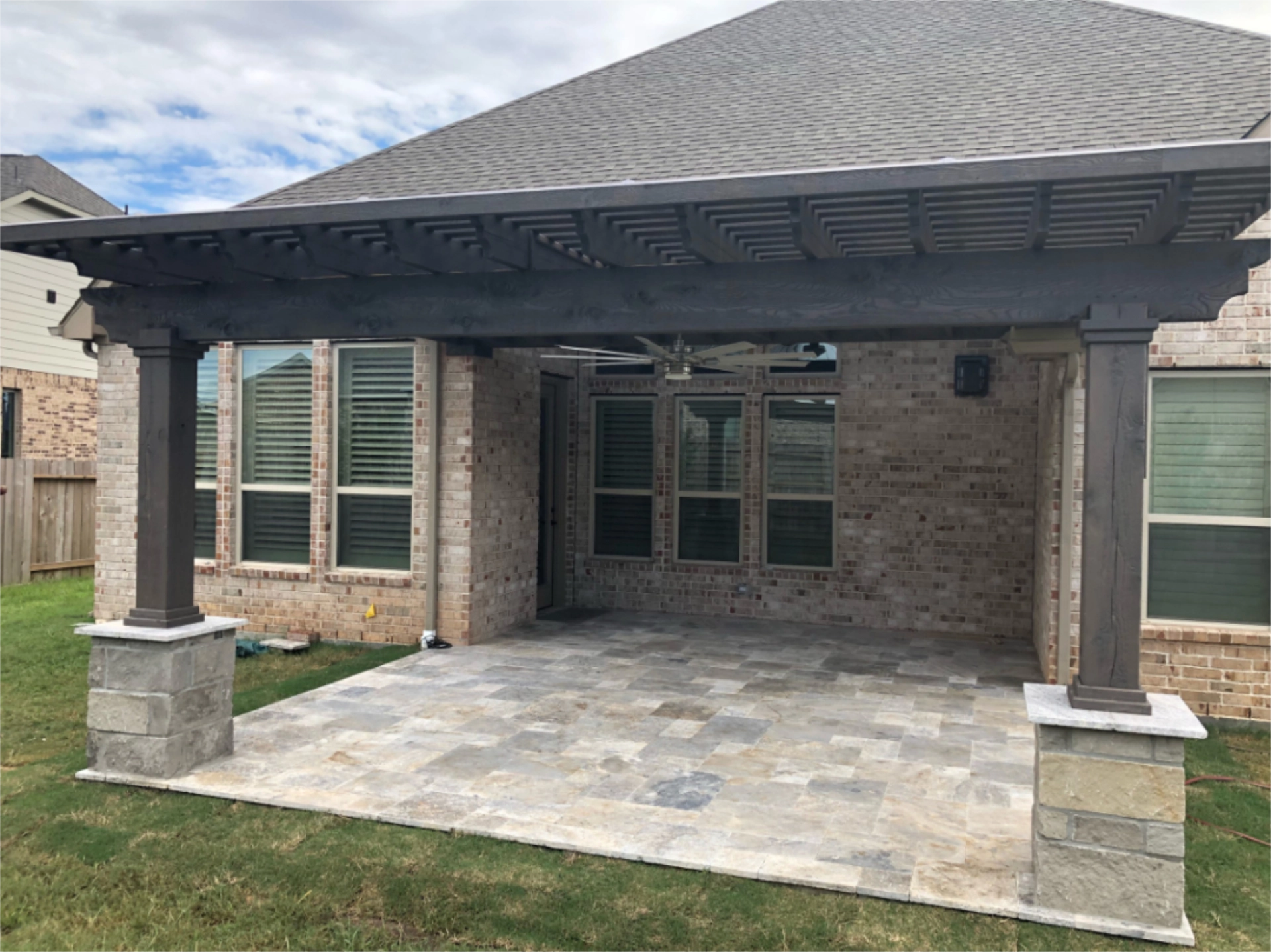 Incorporate stonework into your pergola’s base or columns to tie into your home’s existing materials and a wide variety of stain options to coordinate perfectly with your home’s exterior finishes.
